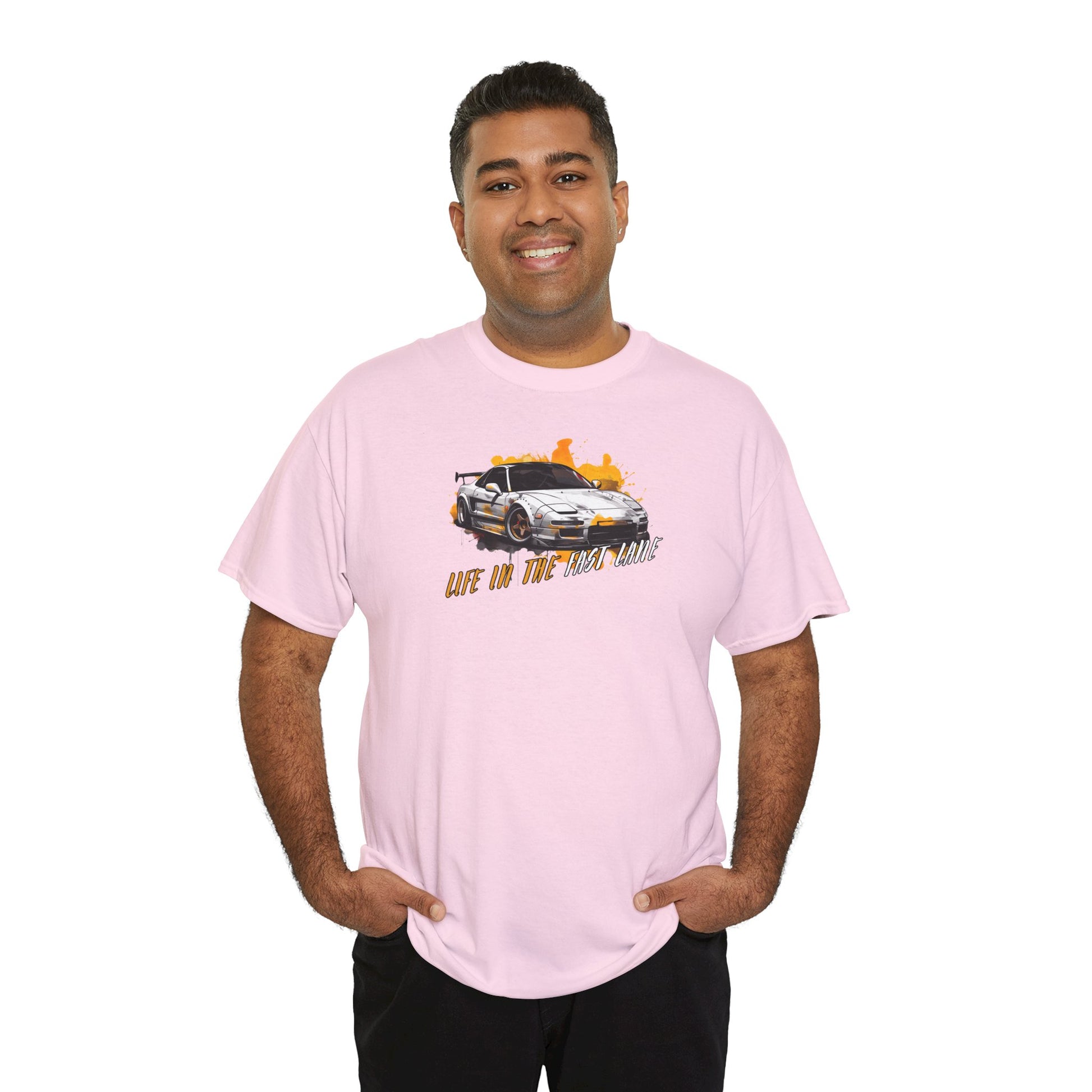 Our JDM T-Shirt is the ideal way to showcase your passion for the JDM lifestyle. Featuring a sleek white JDM vehicle with vibrant yellow accents, this shirt stands out in any collection.