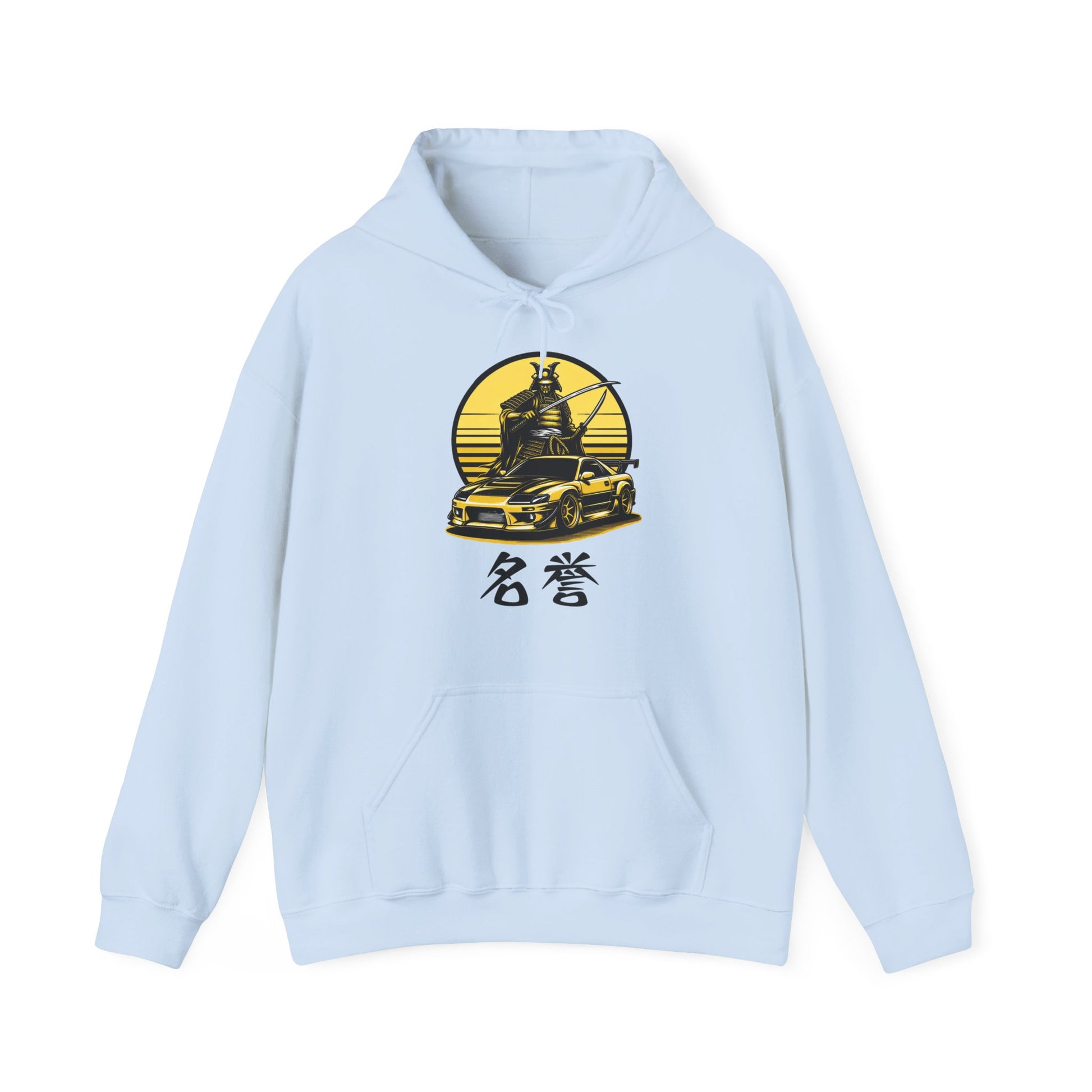 Design Featuring a striking image of a samurai alongside a prominent JDM vehicle, this hoodie captures the essence of bravery and automotive passion. The kanji 名誉, meaning 'honor', emphasizes the samurai’s values of integrity and respect, which resonate deeply within the JDM community.