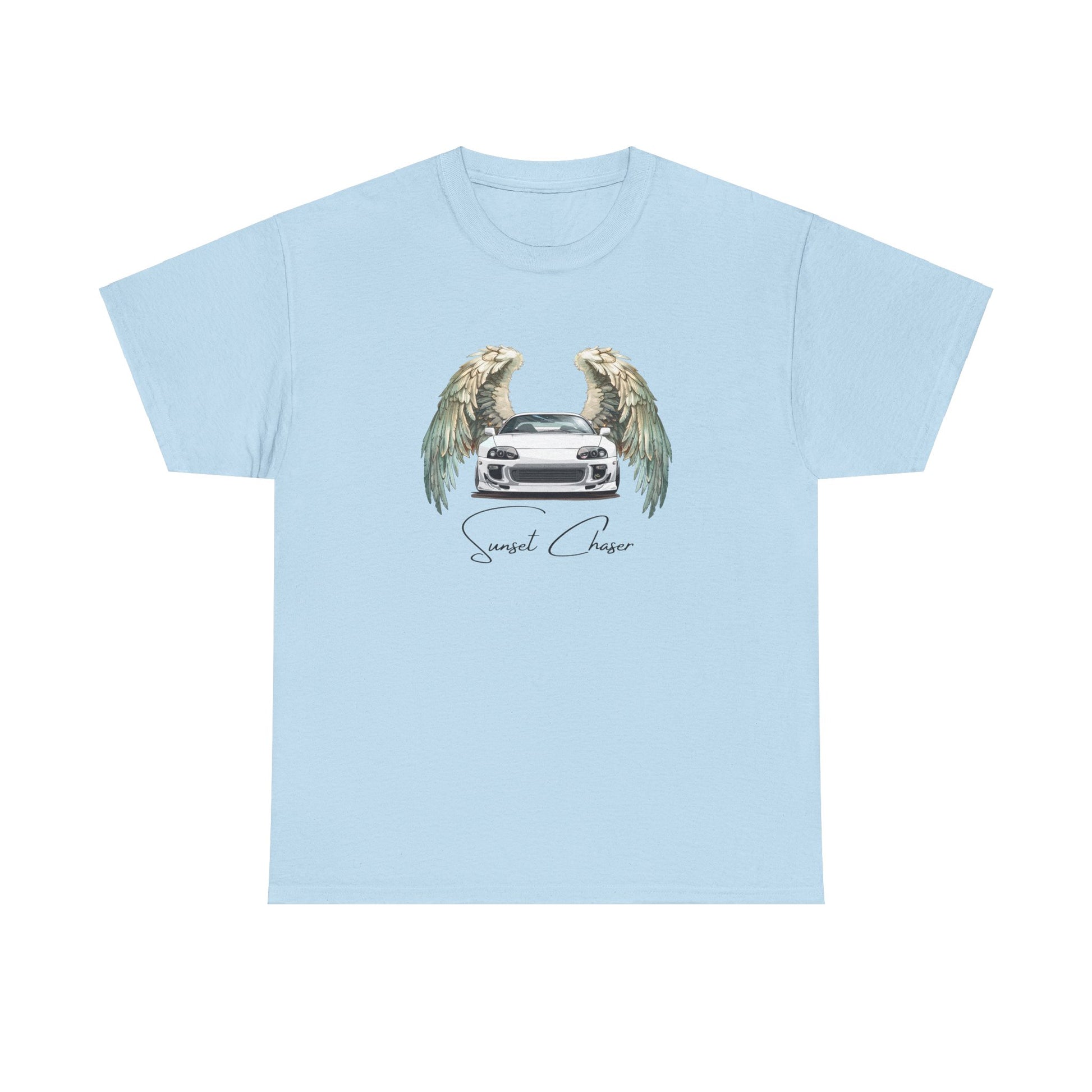 Capture the magic of dusk with our "Sunset Chaser" T-Shirt, featuring an iconic JDM vehicle adorned with angel wings. This t-shirt is more than just a piece of clothing; it's a symbol of the freedom and beauty that the road offers at sunset. Designed for those who chase the horizon and find beauty in every moment, this T-shirt merges a passion for driving with the love of adventure.